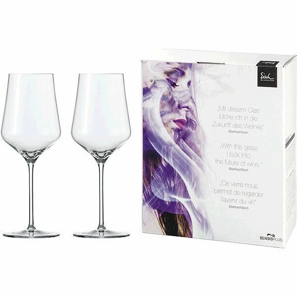 Zwei RotweinglĂ€ser, die anmutige Eleganz ausstrahlen â sie sind Teil der Serie Sky Sensis plus und wurden von Eisch gefertigt.
