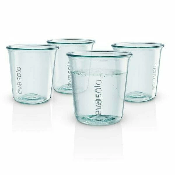 Alle Recycled TrinkglÀser des 4-er Sets von Eva Solo sind aus 100% Recyclingglas hergestellt und machen jedes Glas zu einem ausdrucksstarken Unikat. Dezent im Design bereichern die TrinkglÀser jeden Tisch.
